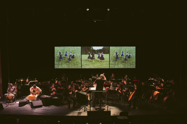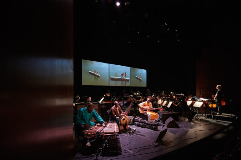 Sur scène, les musiques d’aujourd’hui alternent, comme explosent focales et cadrages sur les écrans. Les « occidentales » brassent les styles, les genres, les inspirations – intériorité spectrale, séquences répétitives, influences rock. Jouées sous la direction de Laurent Cuniot par une vingtaine d’instrumentistes classiques de TM+ et de l’Orchestre symphonique de Mulhouse, elles se passent le relais avec les « africaines », proposées par Ballaké Sissoko à la kora et ses musiciens maliens aux guitares et au balafon.