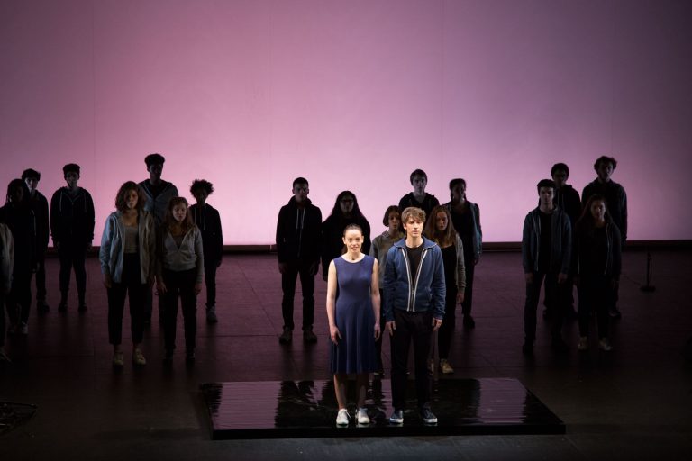 Composé pour une formation pop-rock et chorale d’adolescents, Désarmés embrasse dans un même mouvement, lyrisme et influences sixties pour nous raconter l’histoire d’un amour contrarié dans une saisissante mise en scène de Sylvain Maurice.