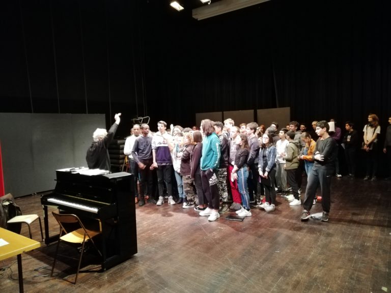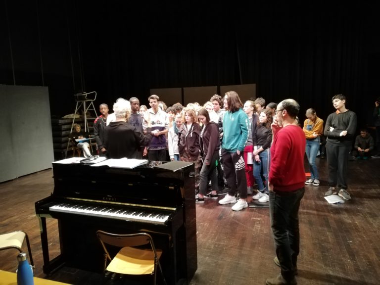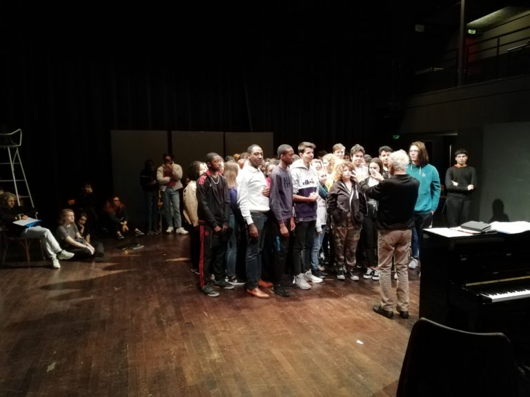 Le chœur du Lycée Auguste Renoir d’Asnières-sur-Seine ainsi que les élèves de 1ère spécialité musique font dialoguer sur scène les textes qu’ils ont sélectionnés et des musiques de répertoires, ces dernières trouvant un nouvel éclairage à travers leur mise en forme théâtrale.
